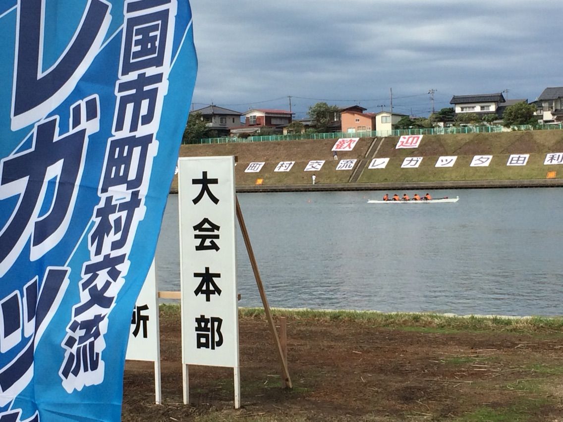毎年、ボート競技のある市町村が参加して行われる交流大会。昨年は市制施行50周年を迎えた戸田市で開催されましたが、今年は秋田県由利本荘市で行われました。