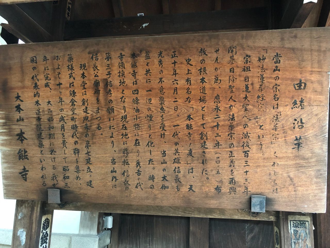 写真は本能寺。本能寺と言えば「本能寺の変」で有名ですが、今の本能寺は、あの本能寺の変があった場所に建っていません。修学旅行生で賑わう京都市の新京極通りの一筋西側の寺町通りを三条から更に北に進んだ場所にあります。豊臣秀吉の時代に移転しました。建物も一度焼失し、今の本能寺は昭和の時代に再建されたものです。