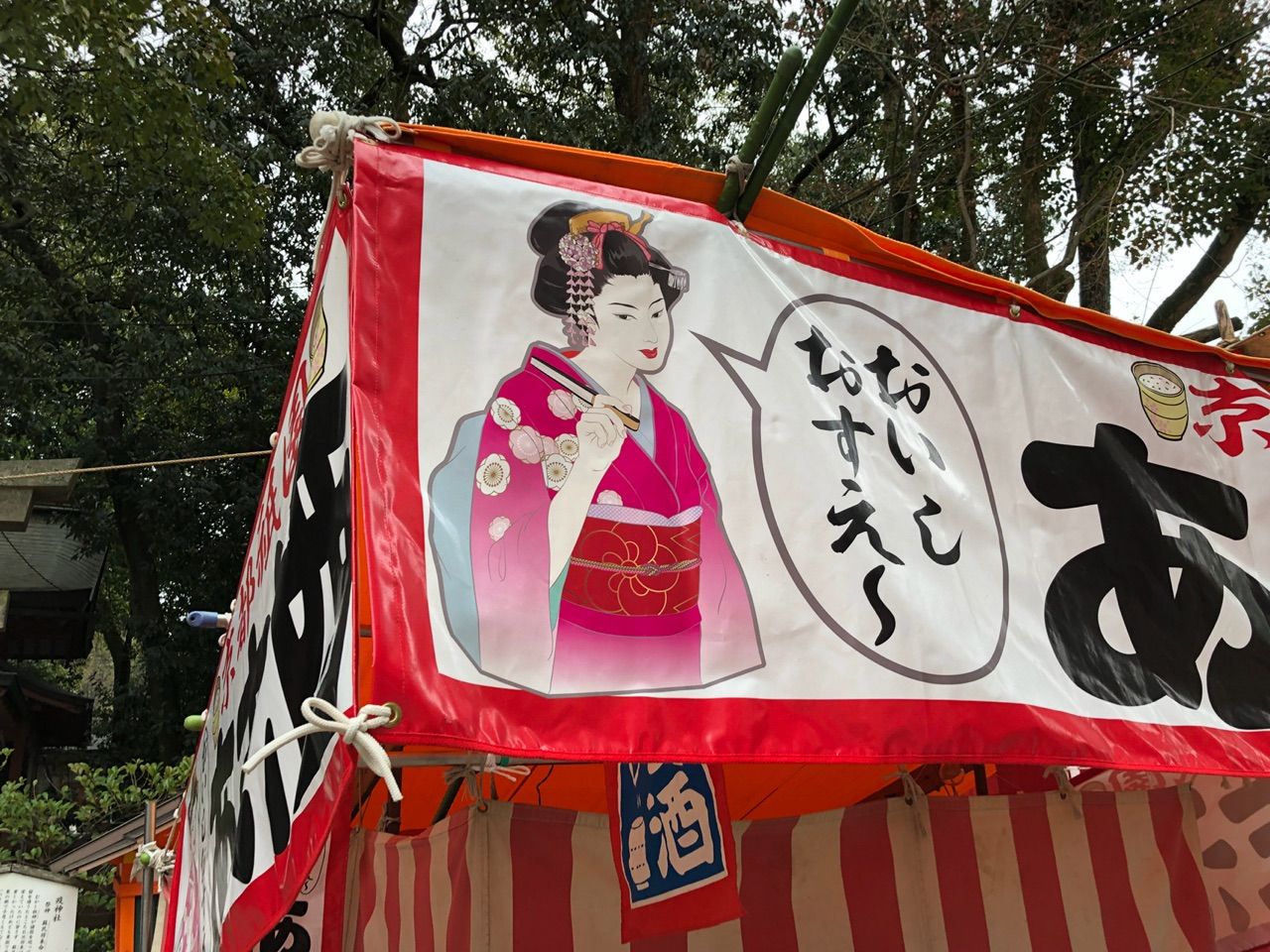 京都のお寺はどちらかというとひっそりしていますが(それでも御朱印をもらいにくる方が多いです)、神社は初詣の準備で大忙しのようです。移動する途中でいくつかの神社に寄りましたが、どの神社にも大晦日に向けてテキ屋さんがお店の設置を終えていました。
