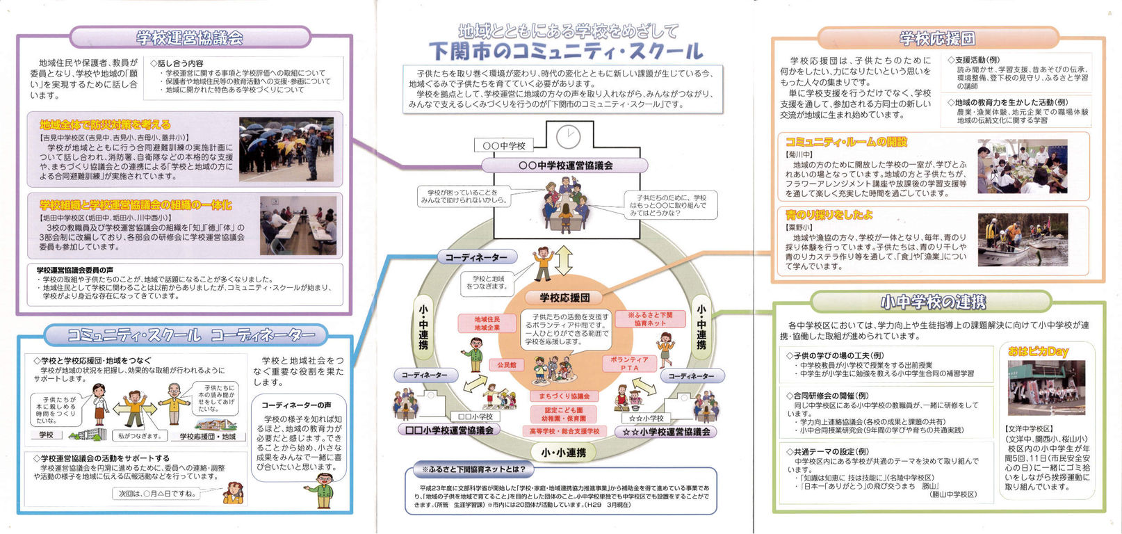 学校での音楽祭鑑賞、学校遠足への参加など、「学校や行事へ地域の方々に足を運んでもらう機会づくり」を重視しています。それが、市民の方々にコミュニティ・スクールについてわかってもらうために一番効果ある方法だと思っています ・・・ 下関市の担当者の方からそんな回答をいただきました。