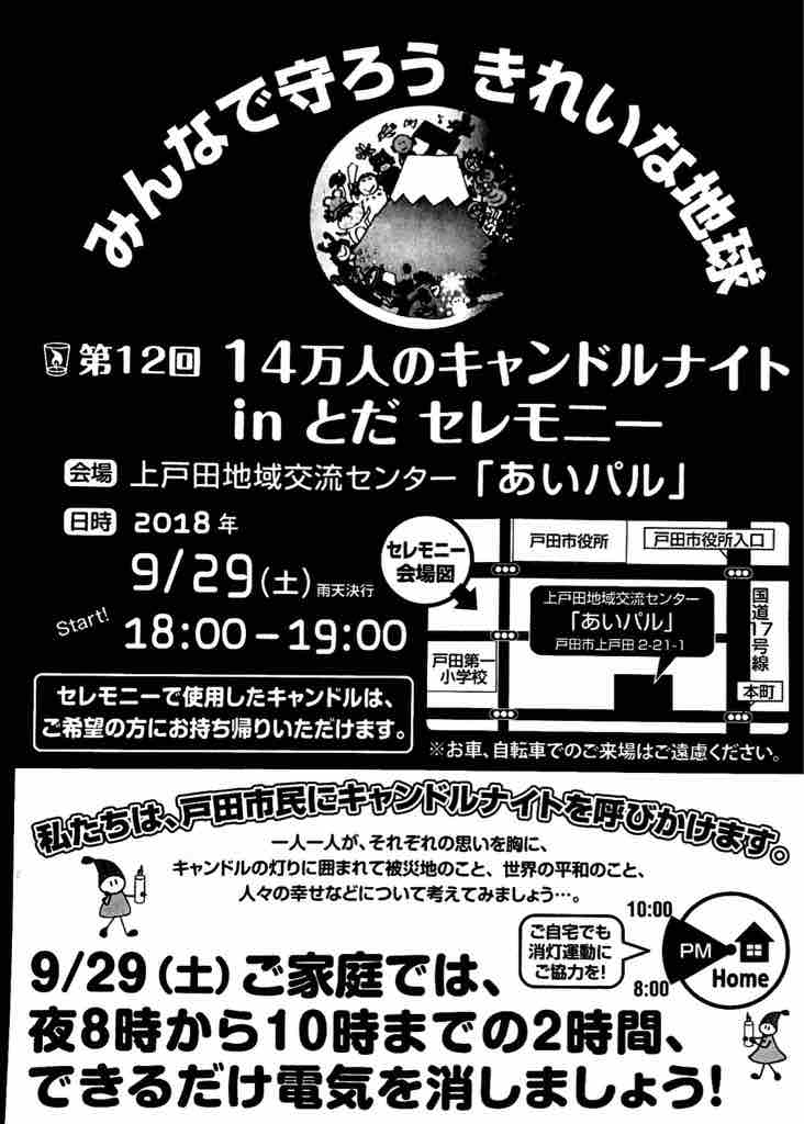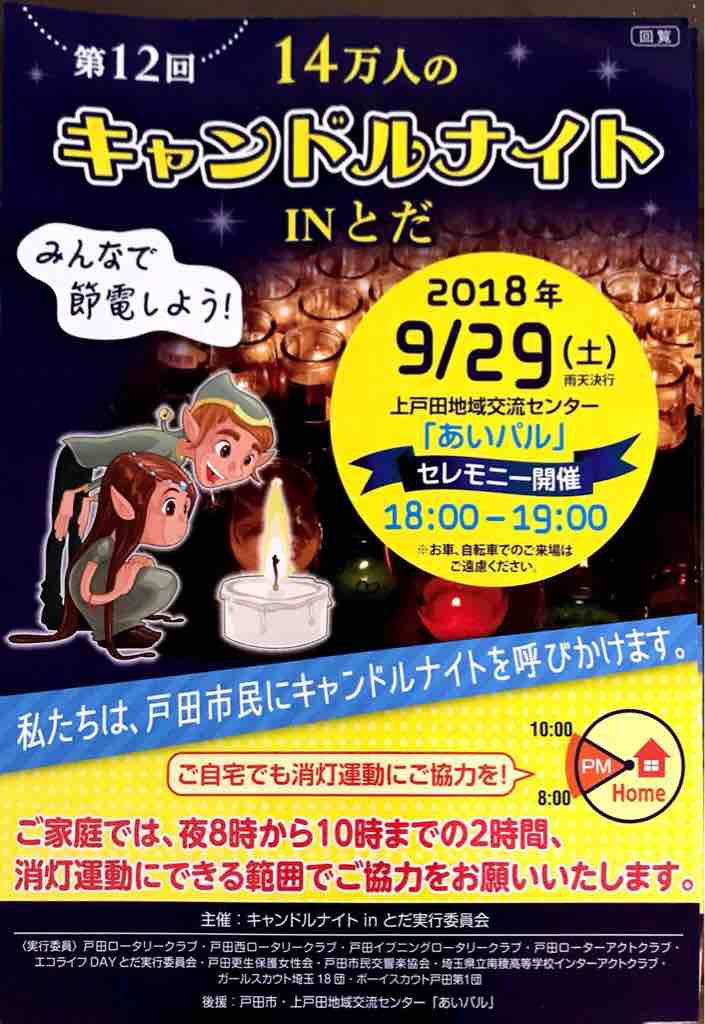 セレモニーは9月29日土曜日の18時から19時まで。上戸田地域交流センターあいパルが会場になります。
