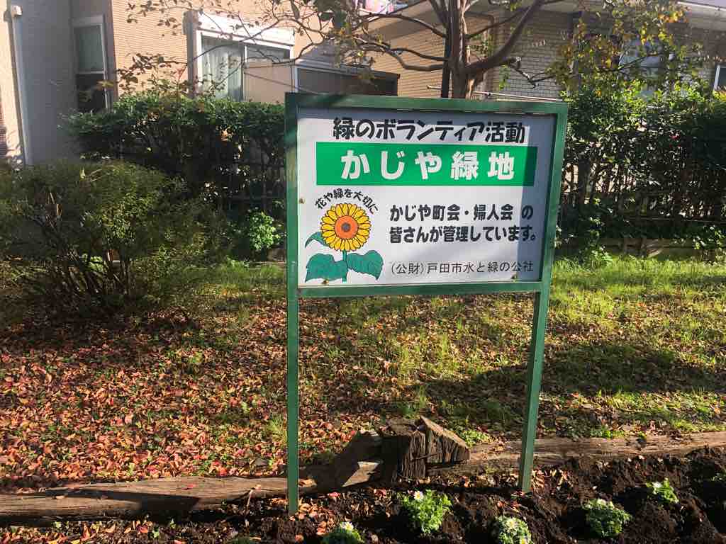 十数年前に戸田市が町会や自治会とともに整備した街かど花壇、緑のボランティア活動の第1号。かじや緑地です。