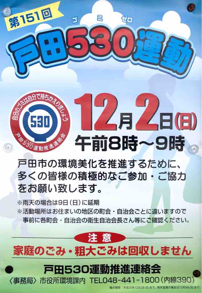 わが街はわが手で美しく!町会・自治会ごとに身近な場所を清掃する530運動(ごみゼロ)運動が12月2日日曜日に開催されます。