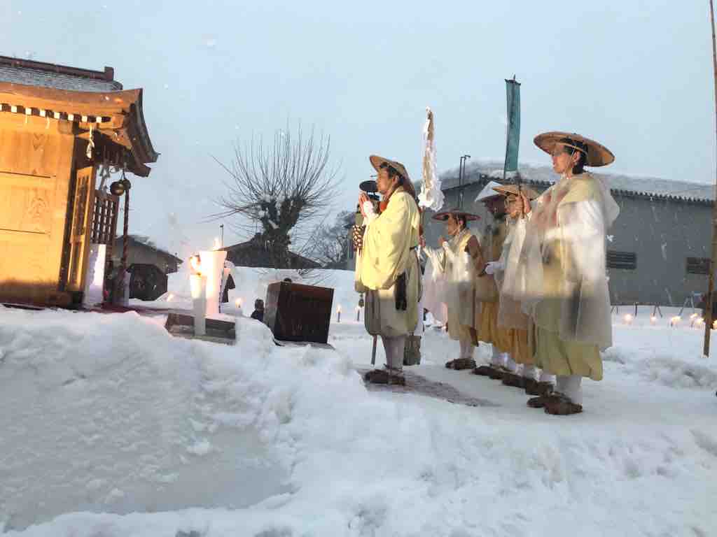 塩沢雪譜まつりでは、歌舞伎が行われる会場の外では、八海山から降りてきた山伏によるお焚き上げや、かまくらをつくって行われる地元のお酒やお餅の振る舞い、地域の方々による雪の中での市、商店街の各店舗で開催される雛人形の展示など、見所の多いまつりとなっています。