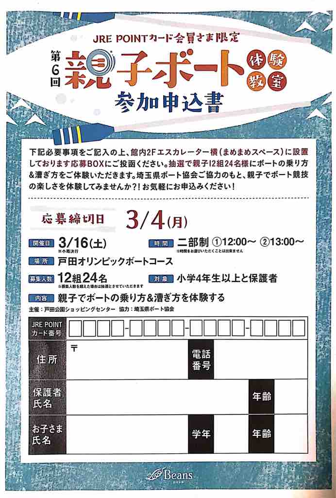 JR東日本ポイントカード(JRE POINTカード)会員限定の親子ボート教室。小学4年生と保護者の方で、JRE POINTカード会員の方ならどなたでも応募できます。
