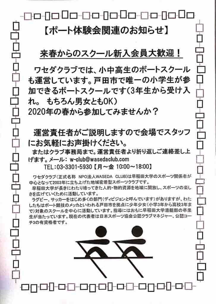 ご関心のある方は、ワセダクラブホームページやチラシをご覧ください。