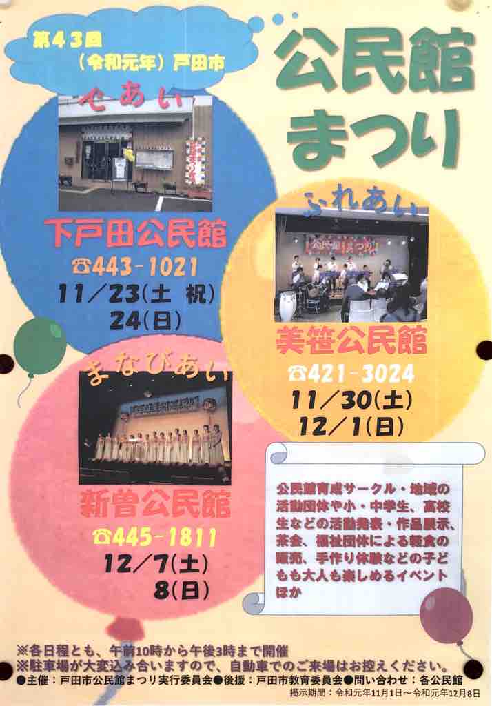 地域活動・生涯学習の拠点でもある公民館。この度、市内3つの公民館で公民館まつりが開催されます。