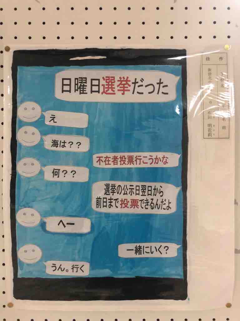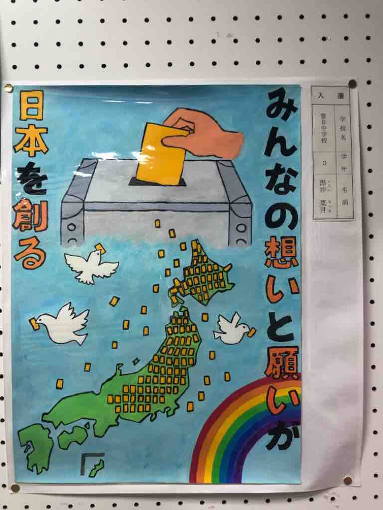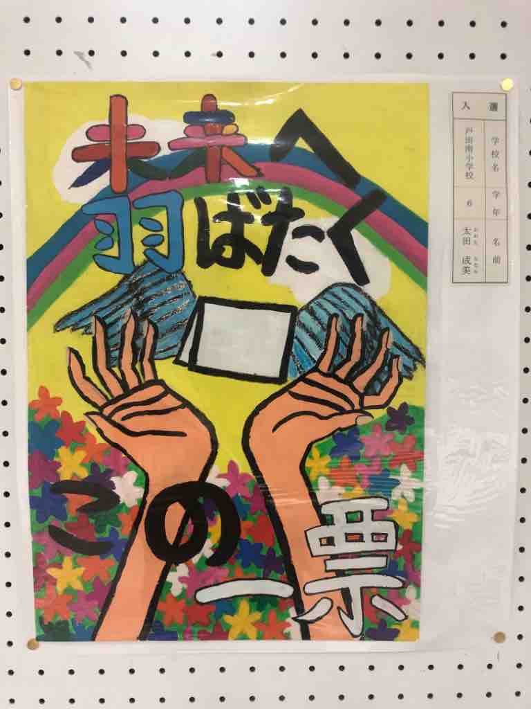 2019年11月25日 明るい選挙啓発ポスター作品展が戸田市役所二階ロビーで開催中。大人が見てもうなる見事な力作も!どうぞ市役所に足をお運びください。 戸田市役所二階ロビーを会場に「明るい選挙啓発ポスター作品展」が開催されています。作品の中にはこんな「なぞかけ」も!大人がみてもうなる力作あふれるポスター展、どうぞ、市役所二階に足をお運びください。子どもたちがしっかり考えてくれた政治への意思表明、市議会議員としてしっかりいただきました。ありがとうございます。 「戸田市」カテゴリの最新記事 < 前の記事次の記事 > コメント コメントフォーム 名前 コメント 評価する リセット リセット 顔 星 投稿する 情報を記憶