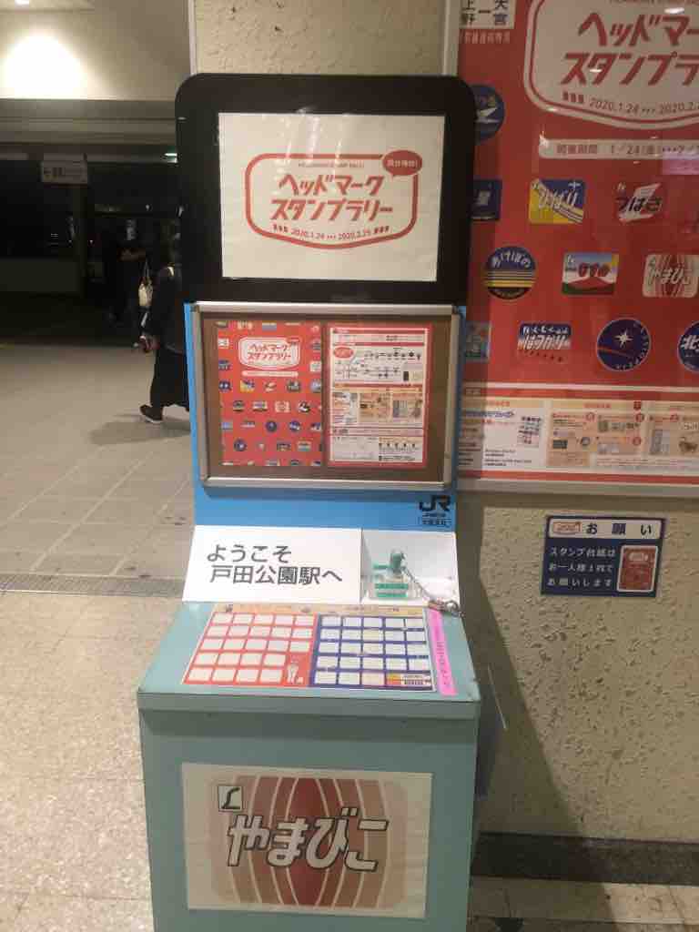 2020年01月24日 ヘッドマークスタンプラリーが戸田公園駅でも始まりました! JR東日本の新企画「ヘッドマークスタンプラリー」が本日より始まりました。私たちの戸田市でも、戸田公園駅にスタンプが一つ設置されています。改札を出て右手側、地図のあるボードの左手側です。懐かしいヘッドマーク。戸田公園駅のは「やまびこ号」のものです。期間は本日1月24日から2月25日まで。詳しくは、JR東日本の特設ページをご覧ください。https://www.jreast.co.jp/press/2019/omiya/20200116_o01.pdf 「埼京線」カテゴリの最新記事 < 前の記事次の記事 > コメント コメントフォーム 名前 コメント 評価する リセット リセット 顔 星 投稿する 情報を記憶