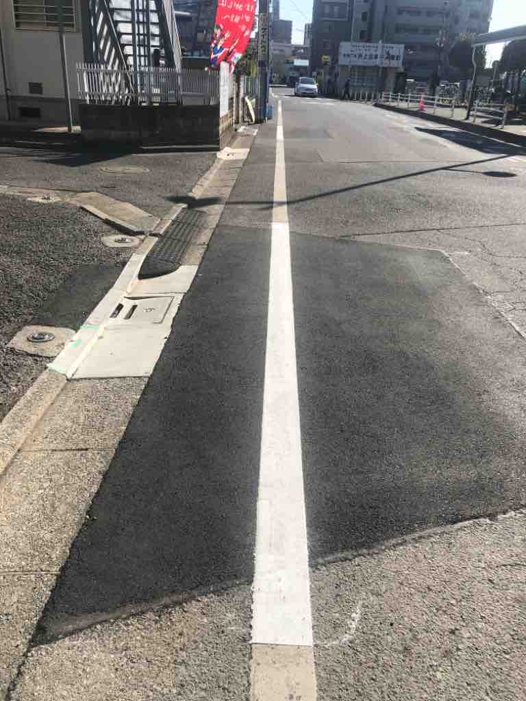 戸田南小学校前から戸田公園駅にかけて行われている「浸透枡工事」の場所に引かれている「白線」には、とても滑りやすくなっているものがあります。