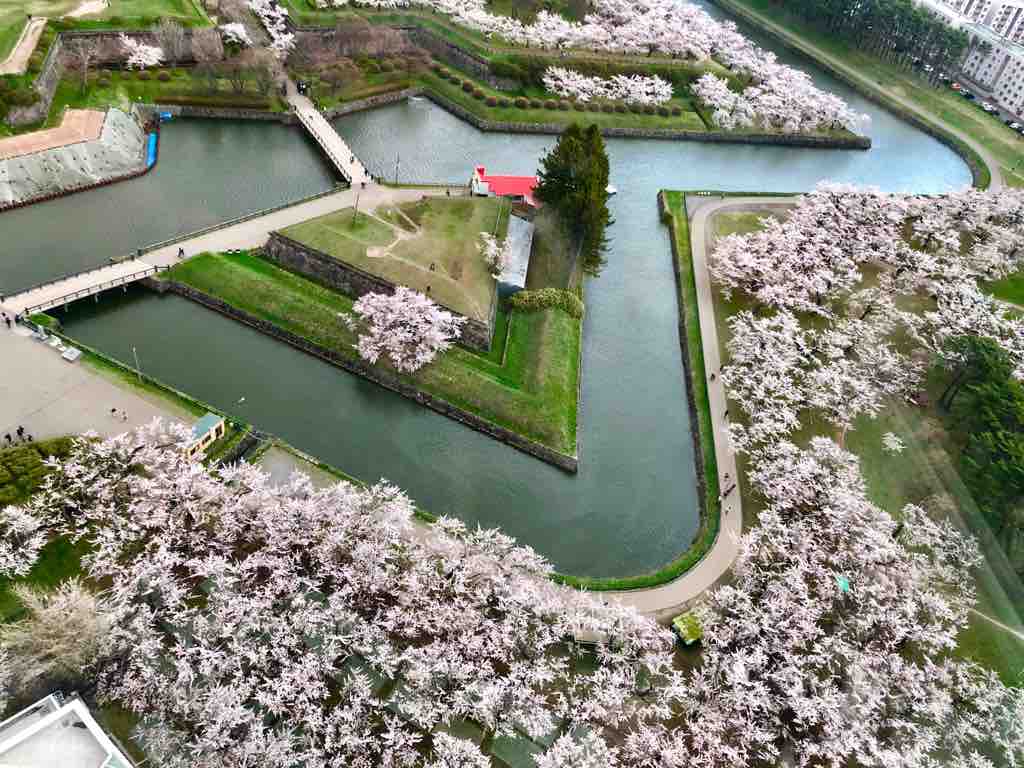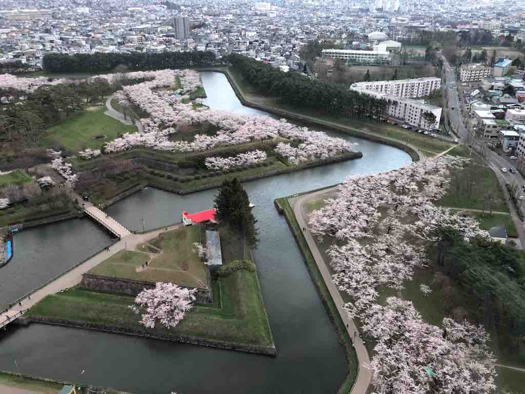 (写真は昨年5月に北海道函館市の五稜郭タワーから撮影した五稜郭の桜の様子です)