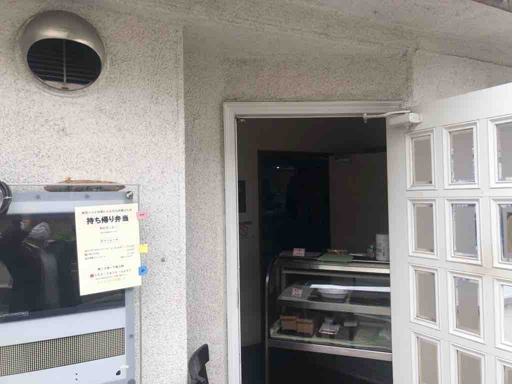 新型コロナウイルス感染防止として、陳列ケースを用意。厨房とお客様の待ち位置は距離を離しての対応になっています。