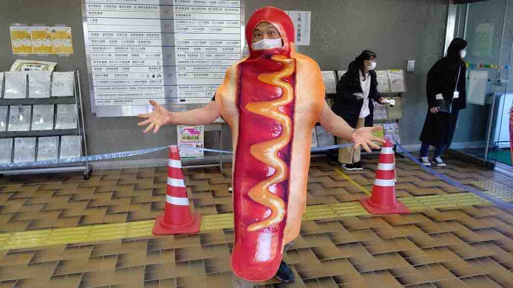 ホットドッグの国からやってきたホットドッグマンは、たくさんの子供たちにかまってもらって喜んでいたぞ!
