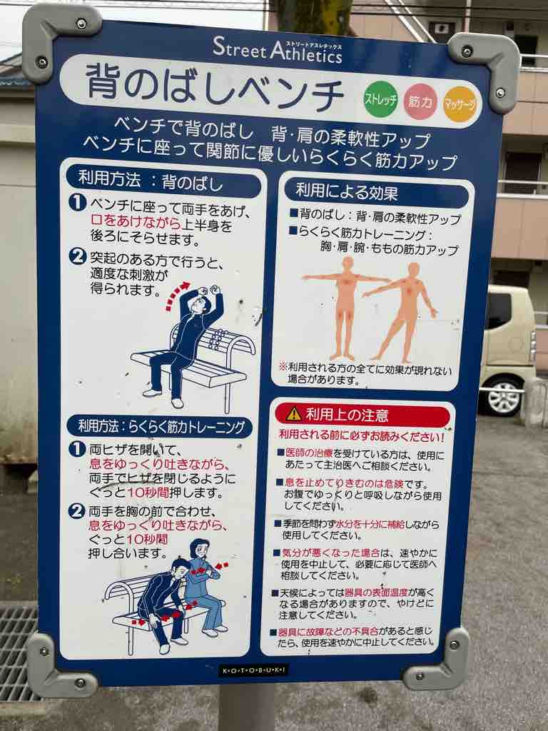 桜も綺麗に咲いていましたが、目を引いたのは4種の健康遊具でした。