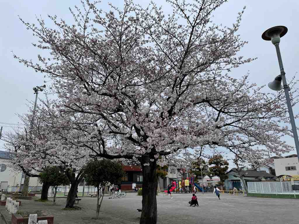 上町第二公園は桜が綺麗に咲いています。桜を愛でながらの気分転換ストレッチ、おすすめします。