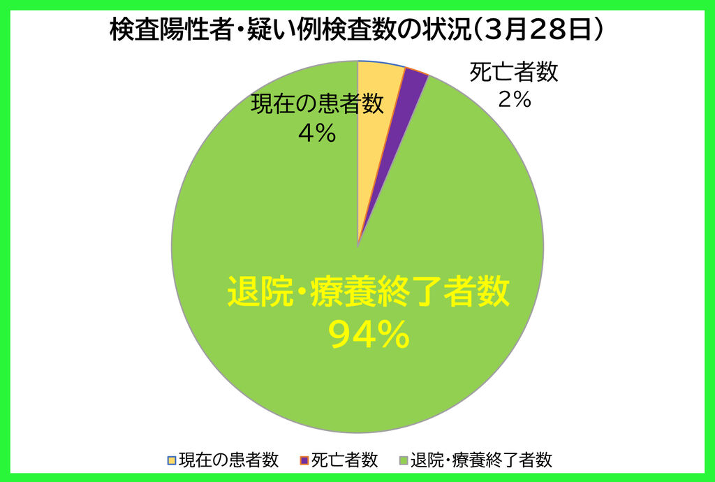 本日、3月28日(日)の埼玉県全体の新型コロナウイルス感染状況が、21時半頃に発表されました。