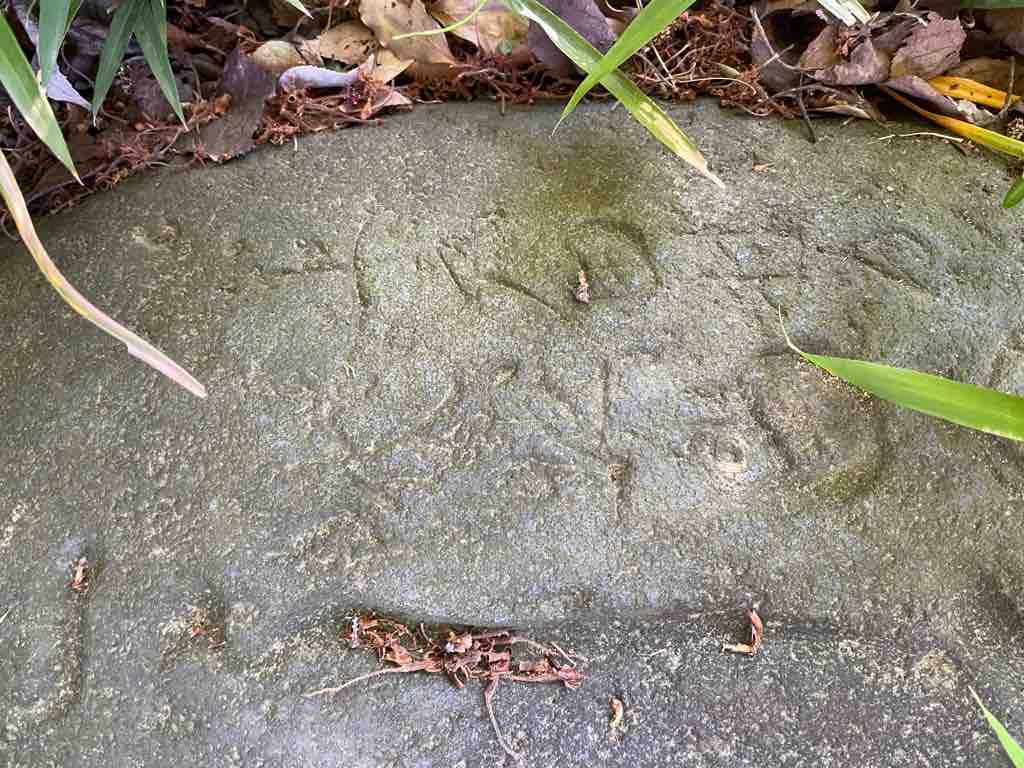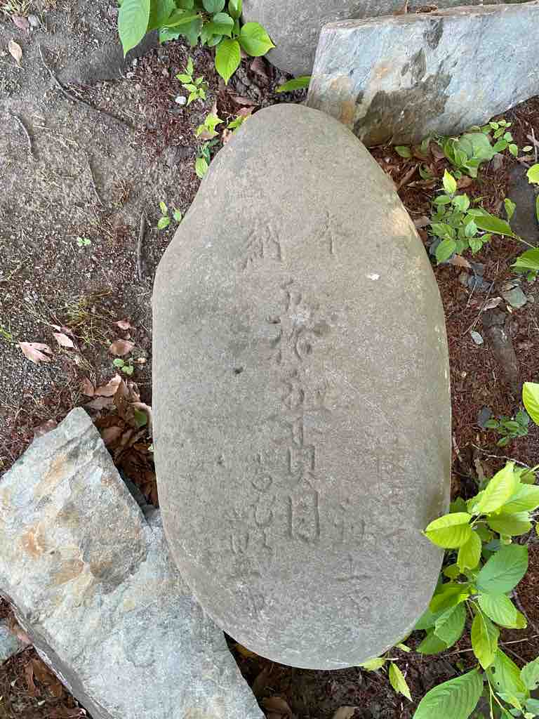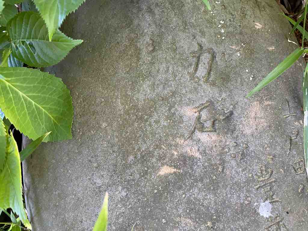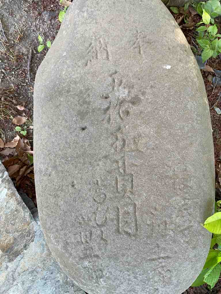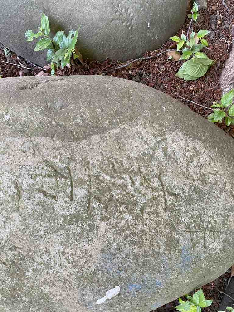 今年、3月19日、これらのうち、境内西側の木の根元に置かれている「力石」や「羽黒山に関係する石像物群」が新たに戸田市の有形文化財に指定されました。その昔、力自慢が競い合った力比べに用いられた「力石」、よく見ると名前や「奉納五貫目」「奉納氷川石」といった文字が刻まれています。