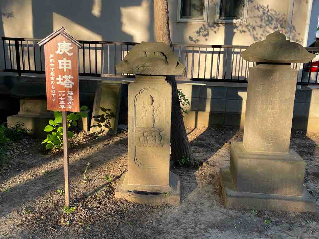境内には戸田市で一番古い庚申塔(こうしんとう・1673年)を始め、歴史的な石像物群がいくつもあります。