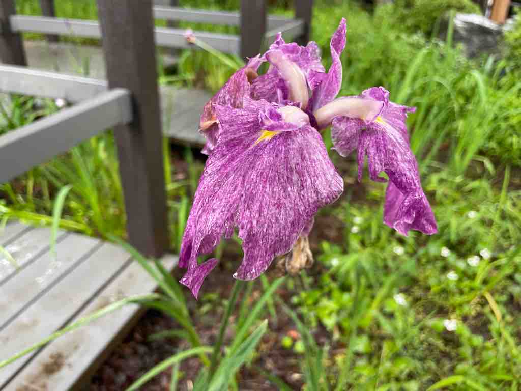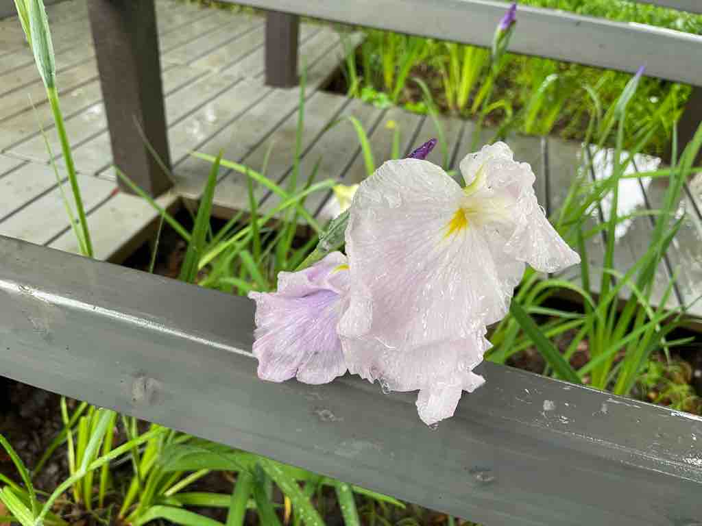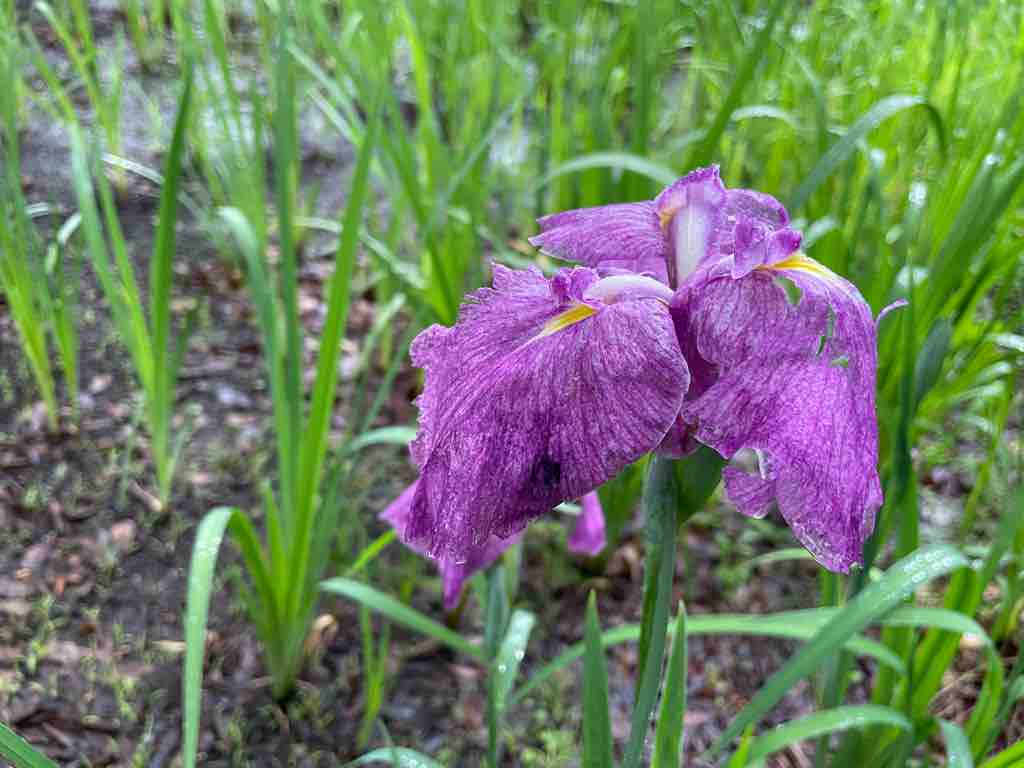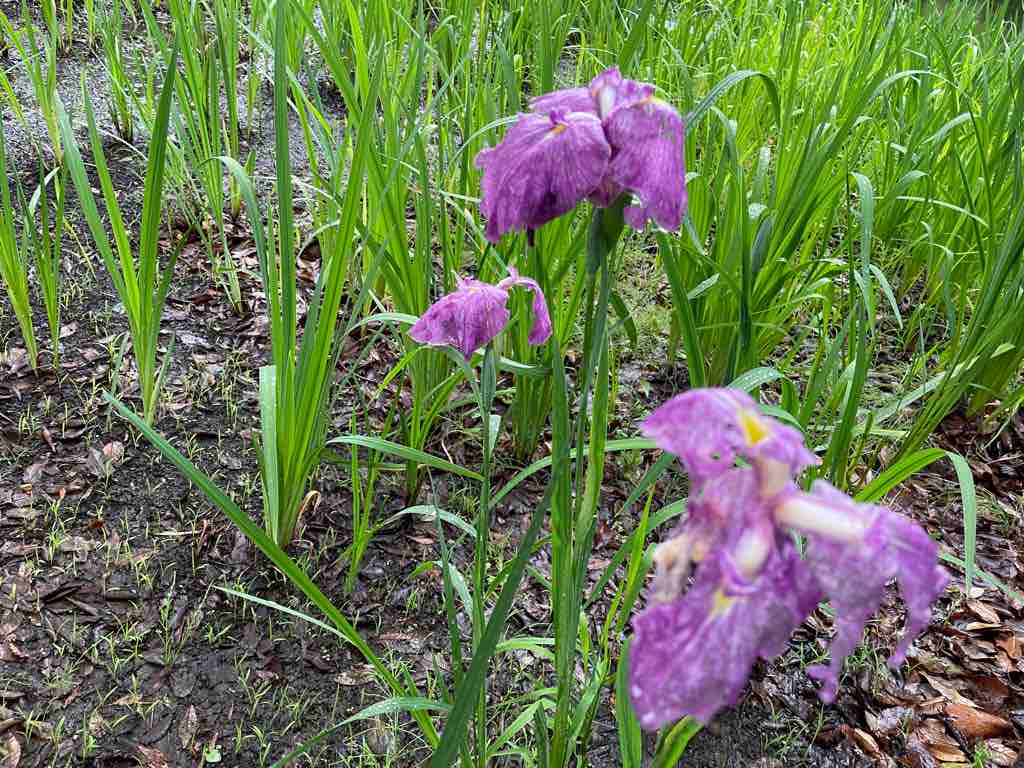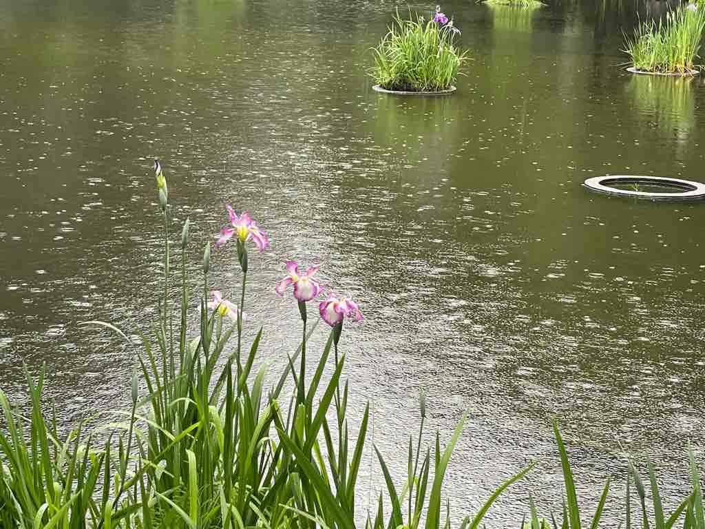 色とりどりの菖蒲が雨に打たれながらも見ごろを迎えており、その可憐な美しさに心奪われ、私はしばらくその場に留まっておりました。