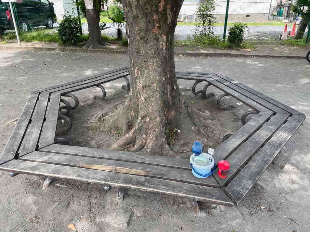 これまでにいくつも対応いただきましたが、先日はスーパーバリューオーカワの南側にある「南町児童公園」を見回っていた時に、入口近くにある木の周りを囲うように設置されている木造ベンチの一部が老朽化して朽ちており、そこにボルトが少しむき出しになっているのを見つけました。