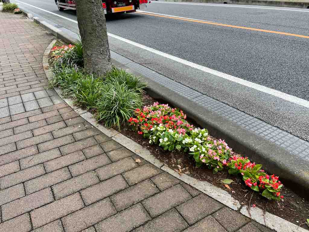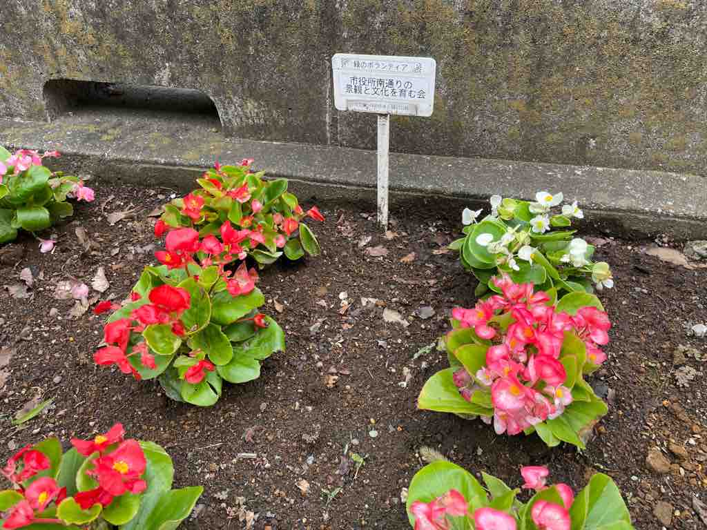 写真は先日花苗の植え替えをした市役所南通りにある花壇の数々です。