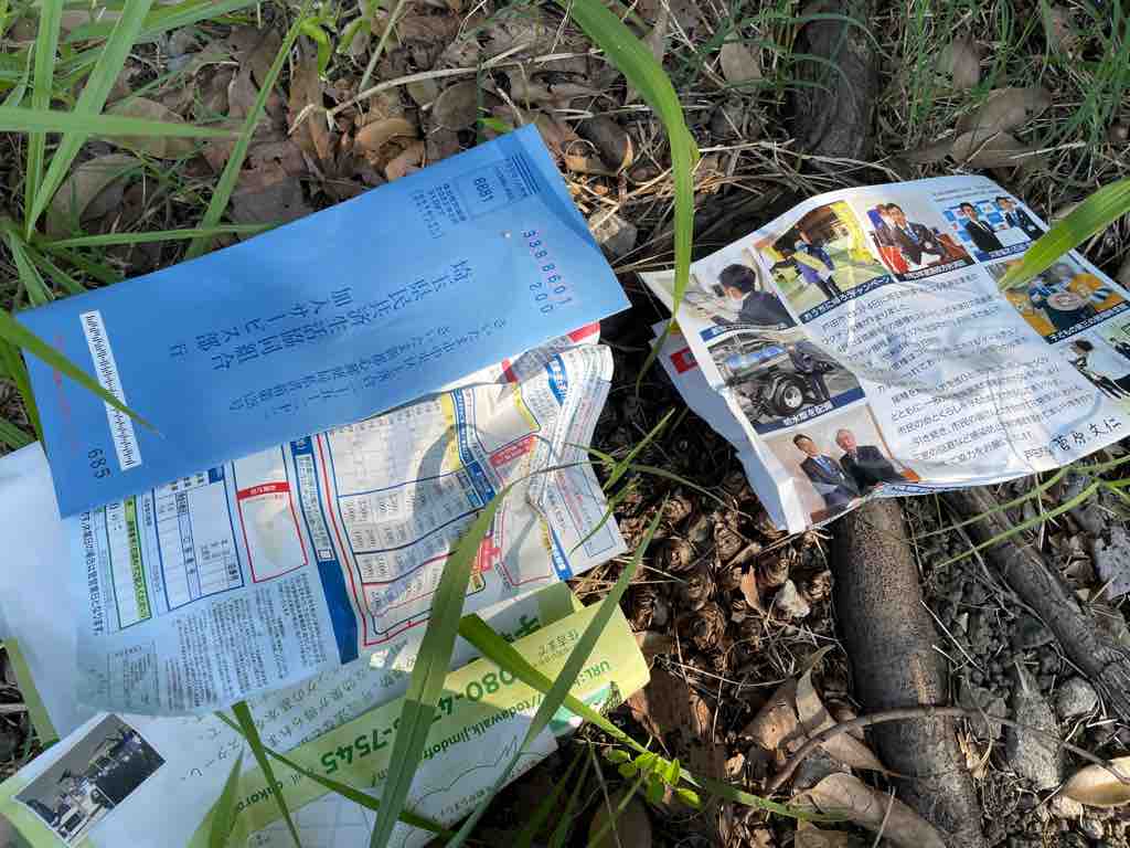 どんぐりの森は、昨日通りがかったのですが、ベンチの周りに酒の空き缶やタバコの吸い殻、弁当箱、パンの袋が散乱し、そんなゴミがあるからでしょうか、郵便受けのチラシゴミも木々の根元にぶちまけられていました。