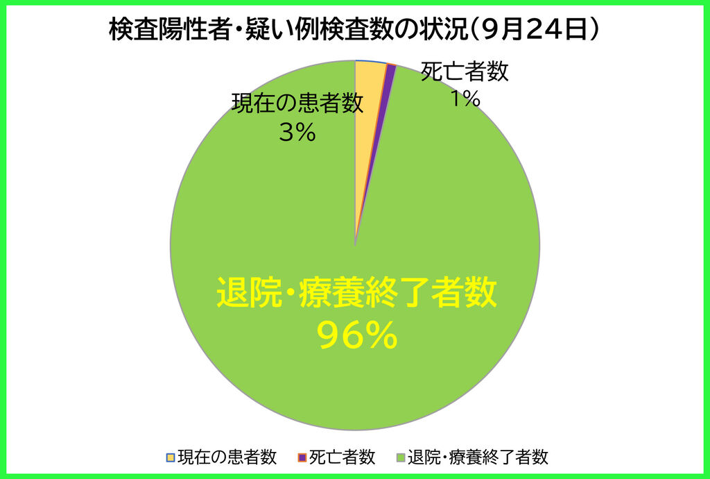 9月24日(金)、埼玉県の現在の患者数は、前日より「406人【減少】」の計3163人。544人の方が、退院・療養終了されました(新たな陽性者は142人)。
