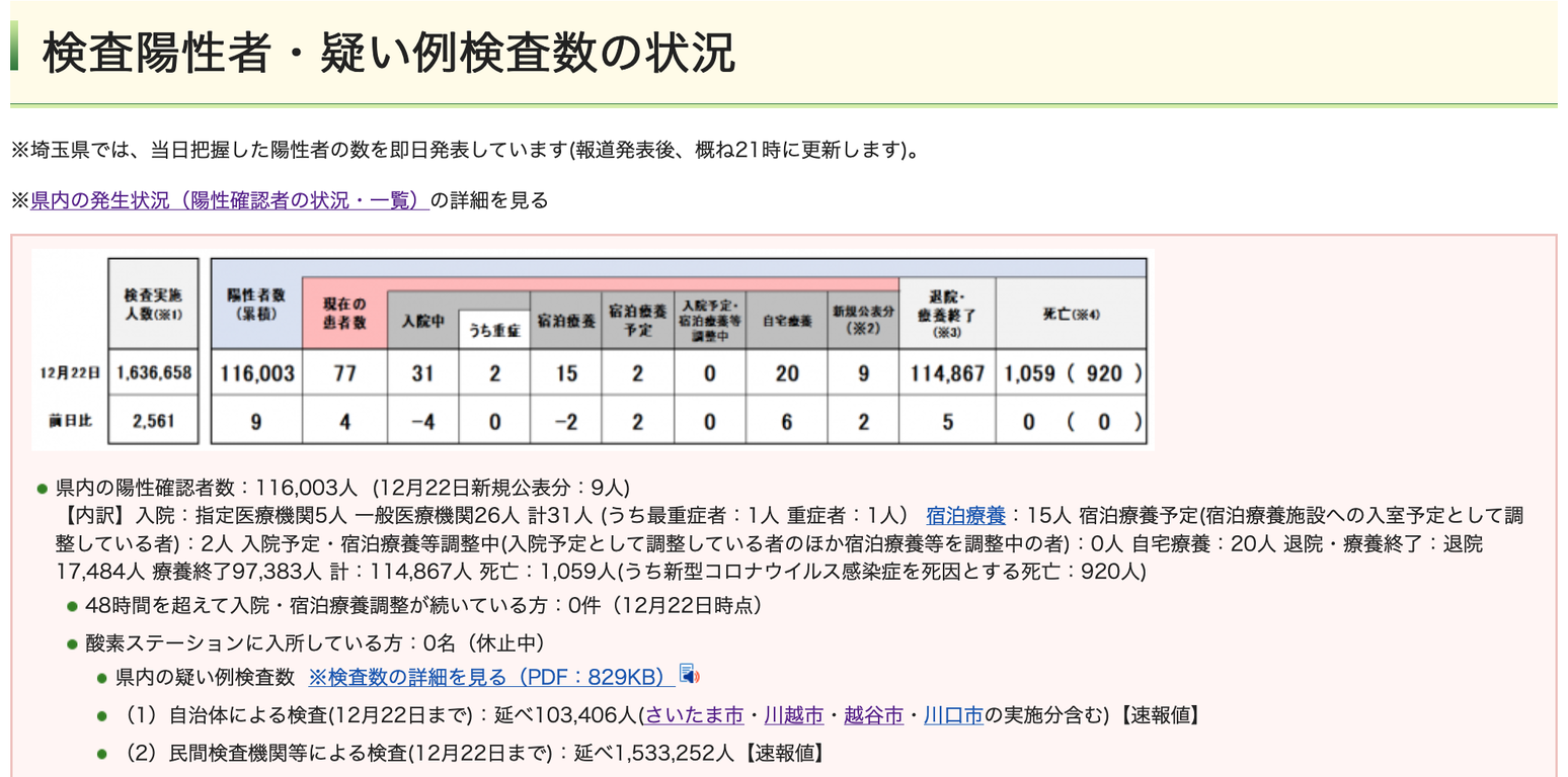 ◆ 本日(12月22日現在)の埼玉県の感染状況