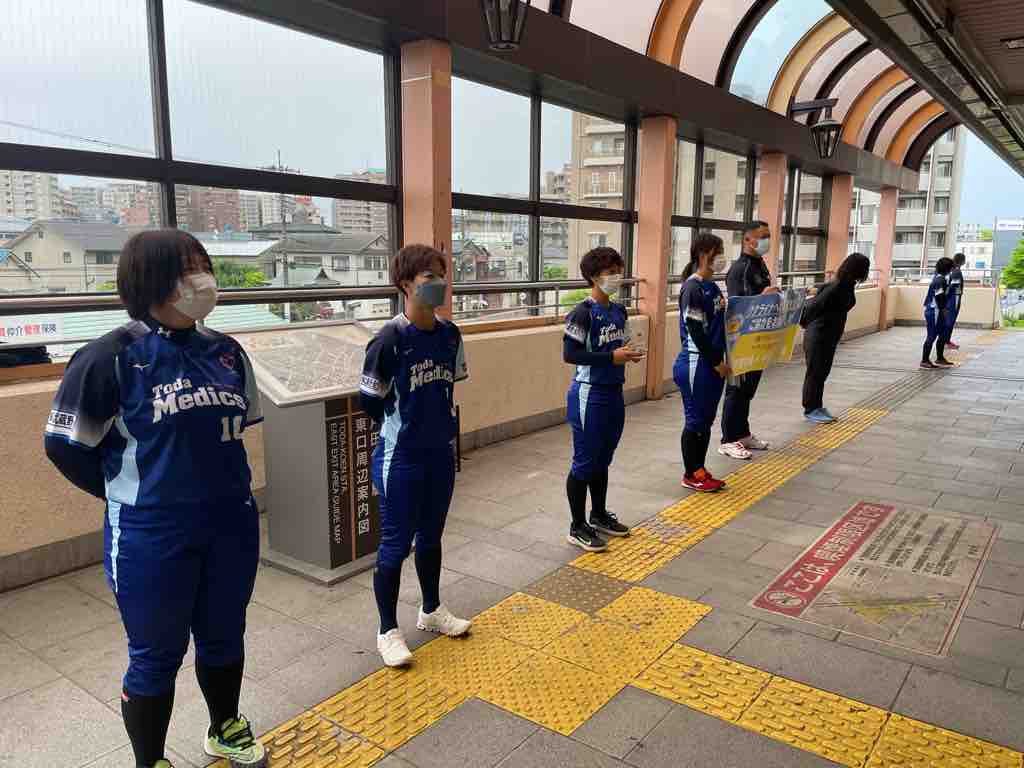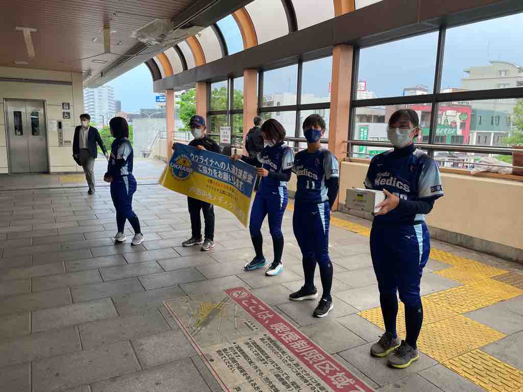 今朝、戸田公園駅と戸田駅で、戸田中央メディックス埼玉の選手たちが、戦禍で苦しむウクライナの人たちの支援にと、募金活動をされていました。