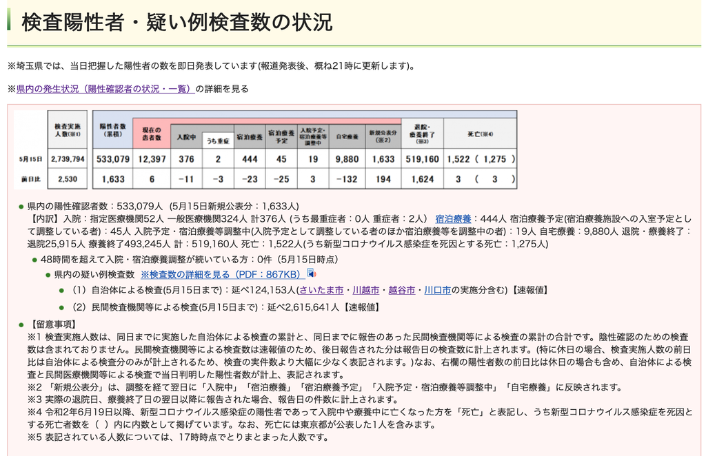 ◆ 本日(5月15日現在)の埼玉県の感染状況