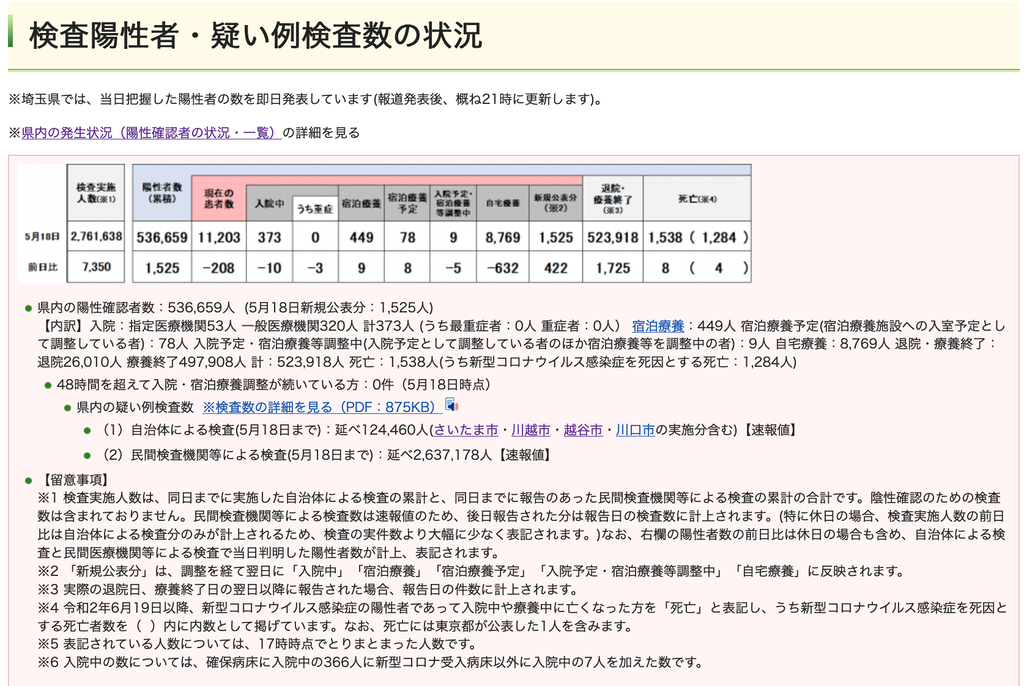 ◆ 本日(5月18日現在)の埼玉県の感染状況