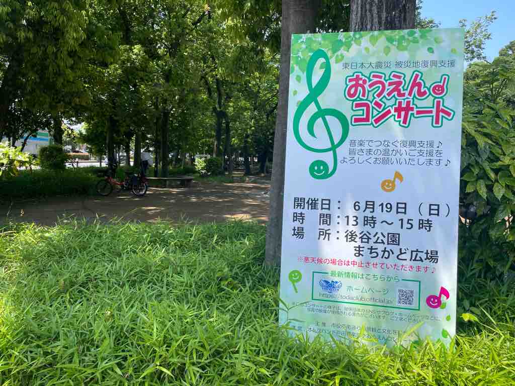 ■ 後谷公園に「おうえんコンサート」が帰ってきます!6月19日(日曜日)13時から15時。市役所南通りの景観と文化を育む会・オトなバンド戸田倶楽部共催イベントです!