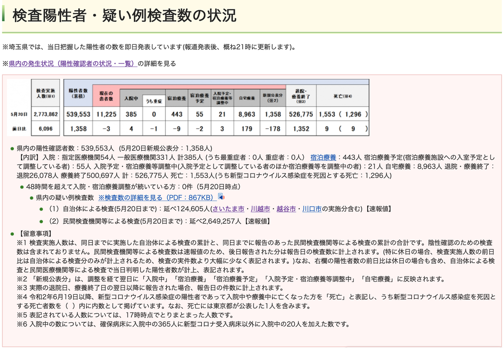 ◆ 本日(5月20日現在)の埼玉県の感染状況