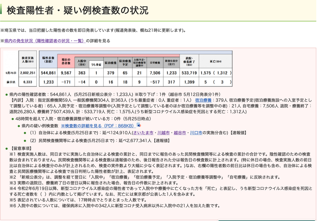 ◆ 本日(5月25日現在)の埼玉県の感染状況