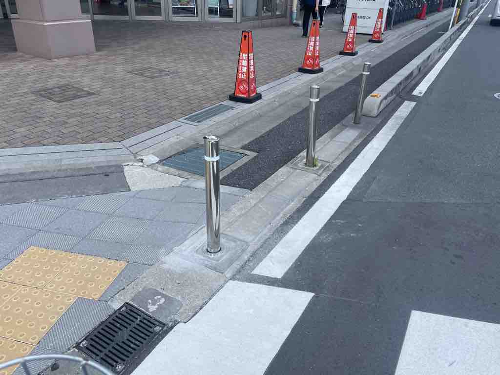 通行される方や施設の駐輪場に向かわれる方が頻繁に出入りされる場所の車止め金属ポールがぐにゃりと曲がっていると、市民の方から情報提供いただいた戸田駅西口・T-FRONTE前の修復が完了しましたので、確認してきました。