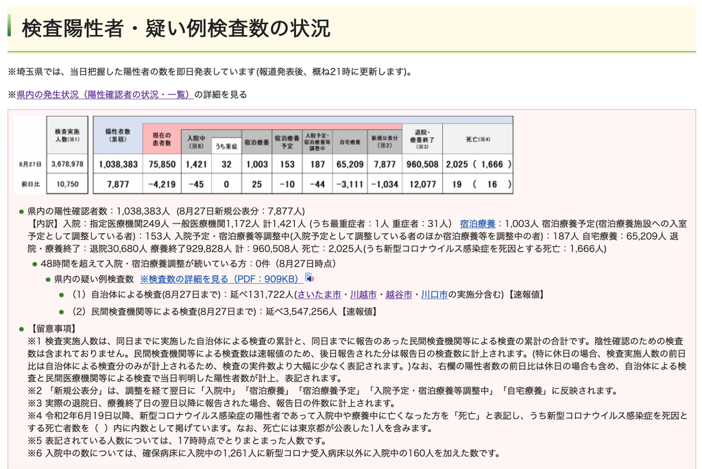 ◆ 本日(8月27日現在)の埼玉県の感染状況
