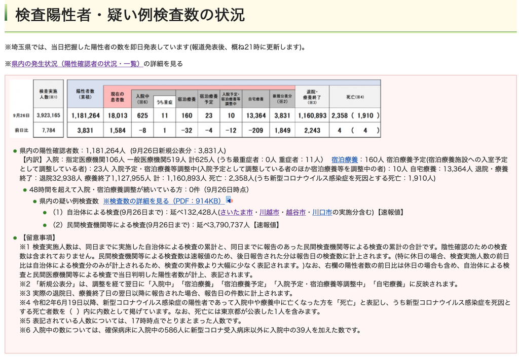 ◆ 本日(9月26日現在)の埼玉県の感染状況