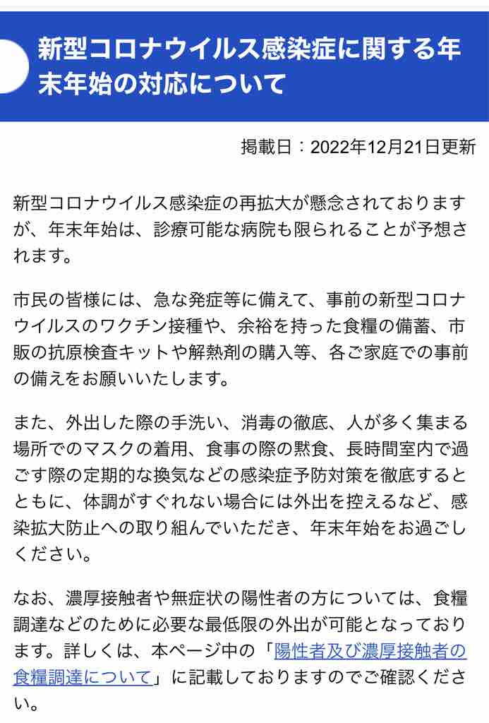 ◆戸田市「新型コロナウイルス感染症に関する年末年始の対応について」