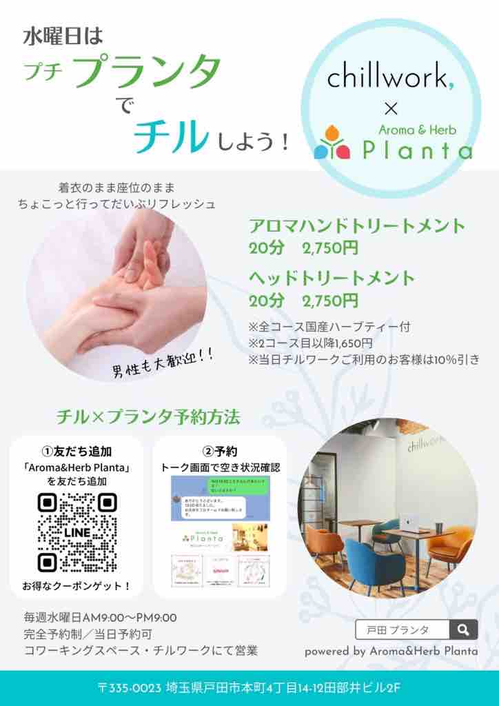 ¢£¸ÍÅĸø±à±Ø»ê¶á¤Î¥³¥ï¡¼¥¥ó¥°¥¹¥Ú¡¼¥¹¡¦¥Á¥ë¥ï¡¼¥¯¤Ç¡¢»Å»ö¤ÎÈè¤ì¤òÌþ¤¹¥¢¥í¥Þ¥Ï¥ó¥É¥È¥ê¡¼¥È¥á¥ó¥È¡¦¥Ø¥Ã¥É¥È¥ê¡¼¥È¥á¥ó¥È³«»Ï¡£Ëè½µ¿åÍËÆü9¡Á21»þ¡£ÍøÍÑÆÃŵ¤â¤¢¤ê¤Þ¤¹¡ª
