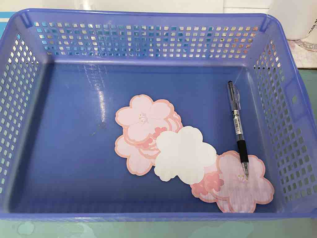その前に置いている桜の花びらに、「大切な人への応援メッセージ」「自身の意気込み」「目標」などを書いて駅係員の方に渡しください。
