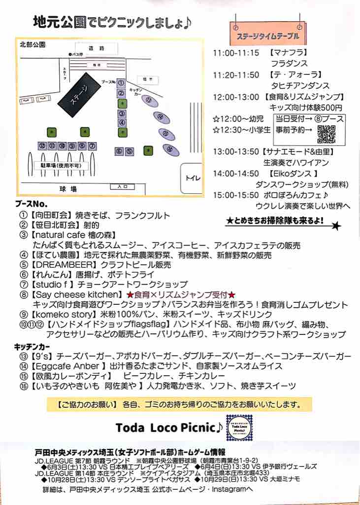 ■戸田市北部公園で野外イベント「とだ ロコ ピクニック」明後日5月28日(日)11時から16時まで開催。ダンス、音楽、ハンドメイド、食育、キッチンカー、野菜販売などあります!