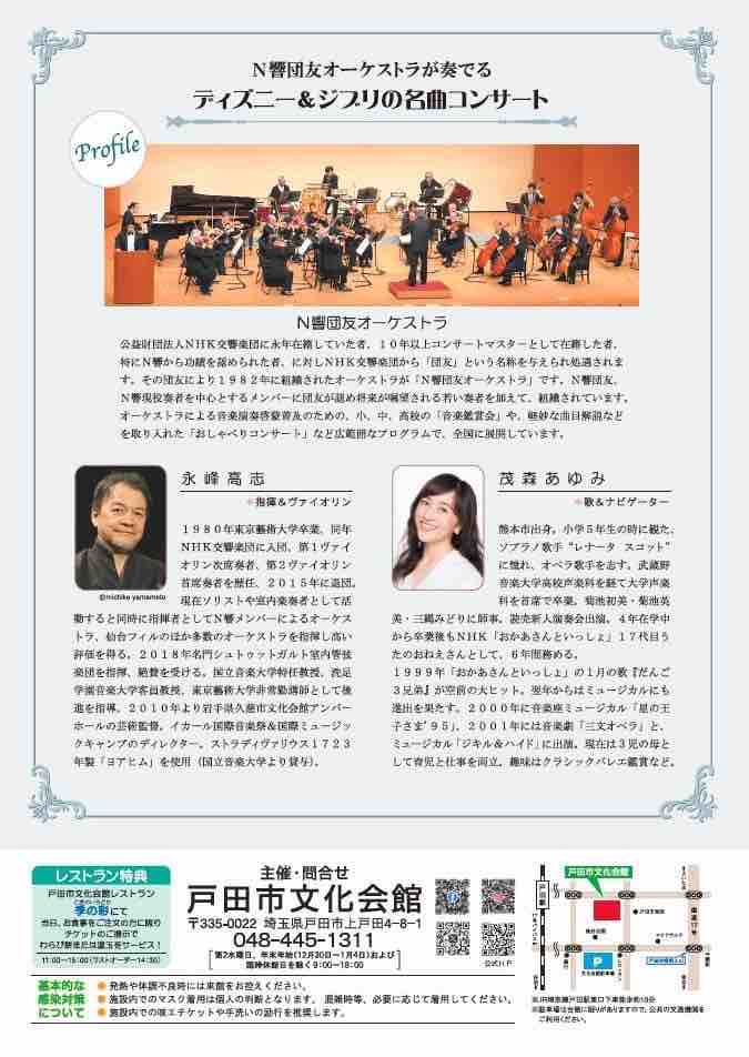 ■【一般販売始まりました】N響団友オーケストラが奏でるディズニー&ジブリの名曲コンサート、2024年2月25日(日)戸田市文化会館大ホールにて開催。茂森あゆみさんも歌われます!