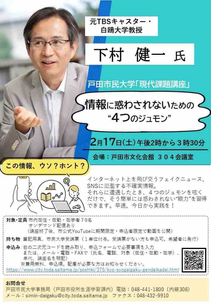 ¢¡¸µTBS¥¥ã¥¹¥¿¡¼²¼Â¼·ò°ì¤µ¤ó¹Ö±é²ñ¡Ö¾ðÊó¤ËÏǤ蘆¤ì¤Ê¤¤¤¿¤á¤Î¡È4¤Ä¤Î¥¸¥å¥â¥ó¡É¡×¤ò³«ºÅ¤·¤Þ¤¹¡ª¡Ê¸ÍÅÄ»Ô̱Âç³Ø¡Ë