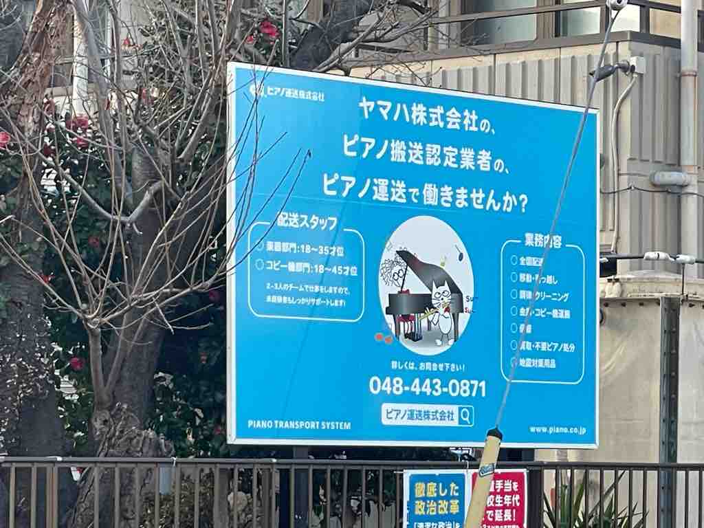 この立体広告を屋上に載せているのは、ピアノ運送株式会社埼玉営業所さん。なるほど!