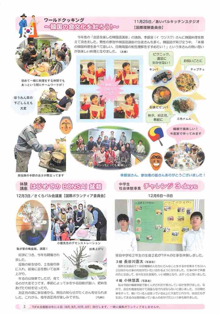 戸田市新曽南多世代交流館さくらパルに本拠を置く公益財団法人戸田市国際交流協会の会報誌「TiFA」の2024年3月号が発行されました。