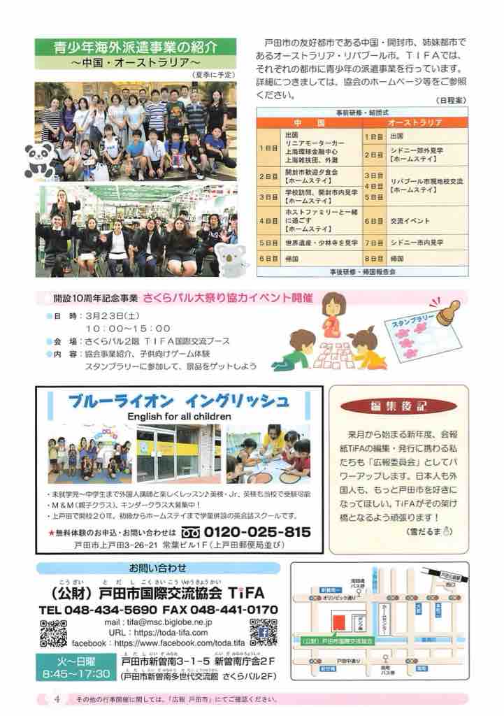 ◆(公財)戸田市国際交流協会TiFA No.108発行