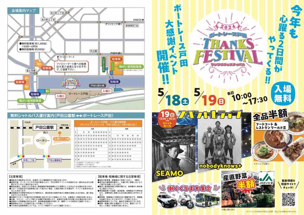 ÌÀÆü¤«¤é¤ÎÅÚÆü¡¦5·î18¡¦19Æü¤Î¸áÁ°10»þ¤«¤é¸á¸å5»þȾ¤Þ¤Ç¡¢¥Ü¡¼¥È¥ì¡¼¥¹¸ÍÅĤò²ñ¾ì¤Ë¡Ö¥Ü¡¼¥È¥ì¡¼¥¹¸ÍÅÄÂç´¶¼Õ¥¤¥Ù¥ó¥ÈTHANKS FESTIVAL¡Ê¥µ¥ó¥¯¥¹¥Õ¥§¥¹¥Æ¥£¥Ð¥ë¡Ë¡×¤¬³«ºÅ¤µ¤ì¤Þ¤¹¡£