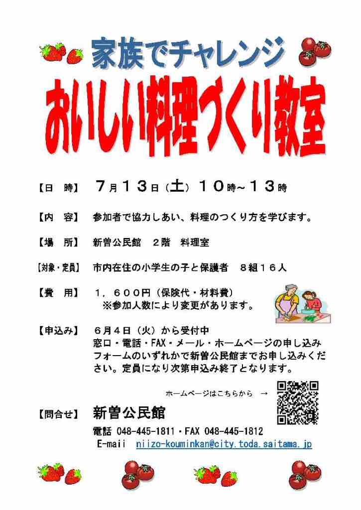 ¢£¿·Á¾¸øÌ±´Û¤Ç¡Ö²È²ÎÁÍý¤Å¤¯¤ê¶µ¼¼¡×¡£7·î13Æü¡ÊÅڡ˳«ºÅ¡£»²²ÃÈñ1600±ß¡£»ÔÆâºß½»¤Î¾®³ØÀ¸¤È¤½¤ÎÊݸî¼Ô¤ÎÊý¤¬ÂоݤǤ¹¡£´û¤Ë¿½¹þ¤¬»Ï¤Þ¤Ã¤Æ¤¤¤Þ¤¹¤¬¤Þ¤À¶õ¤¤¬¤¢¤ê¤Þ¤¹¡£¤ªÁá¤á¤Ë¡ª