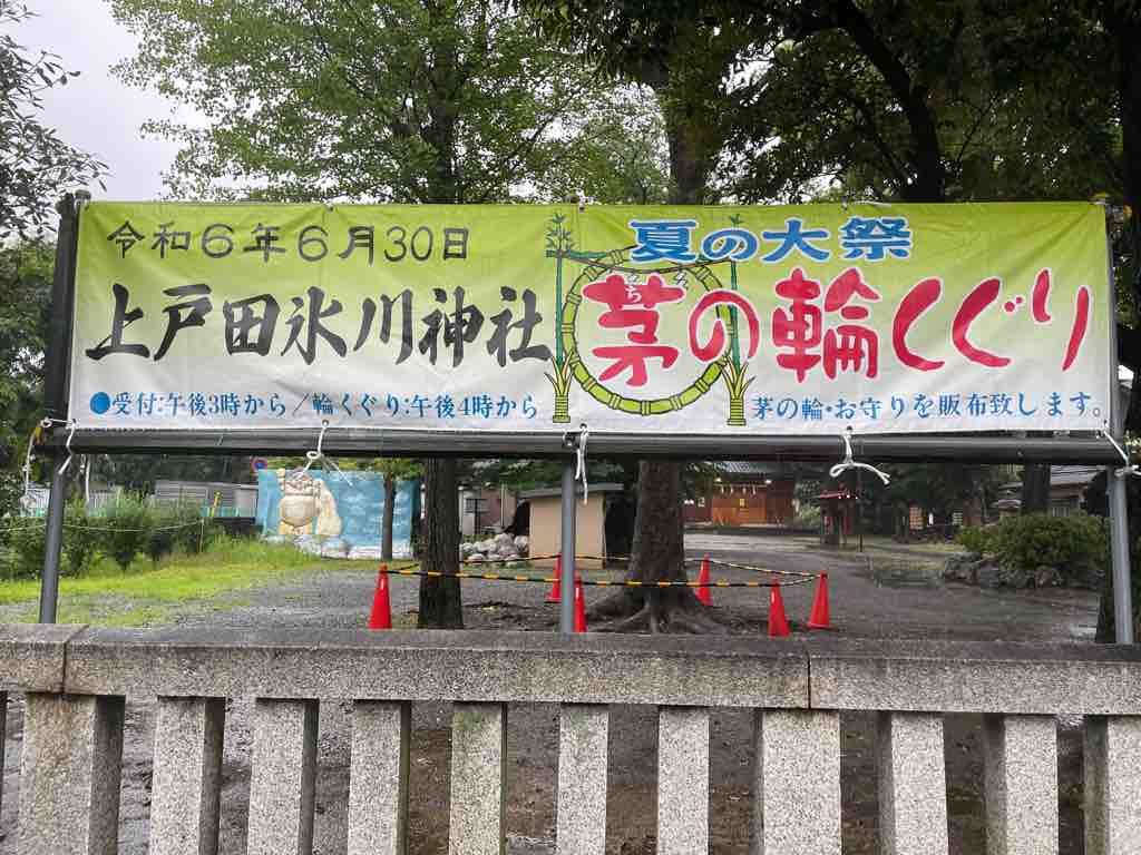 令和6年上戸田氷川神社で行われる「夏越しの大祓」大祓式は明日6月30日(日曜日)16時から開催です。