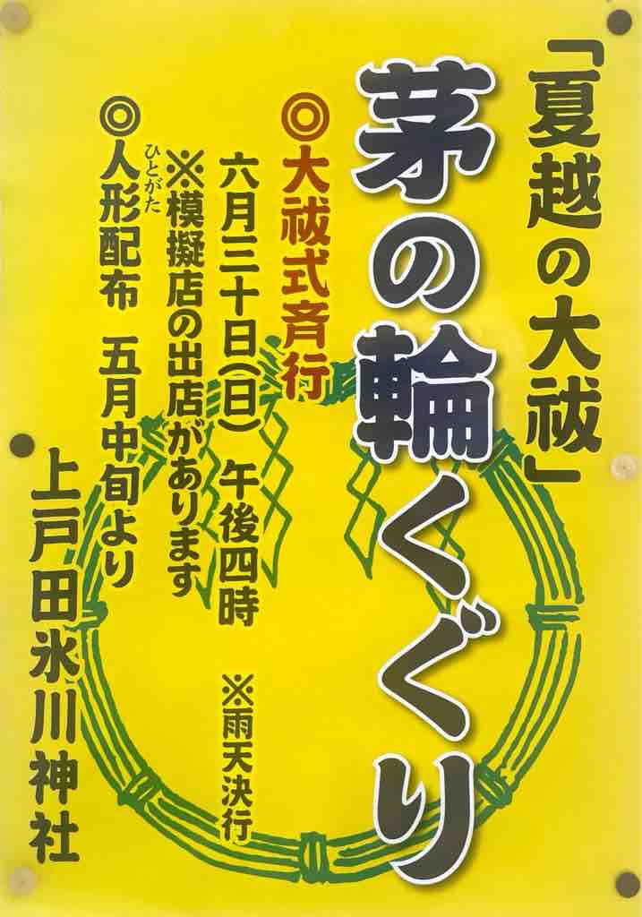 明日6月30日(日曜日)上戸田氷川神社を会場に「夏越しの大祓」が行われます。